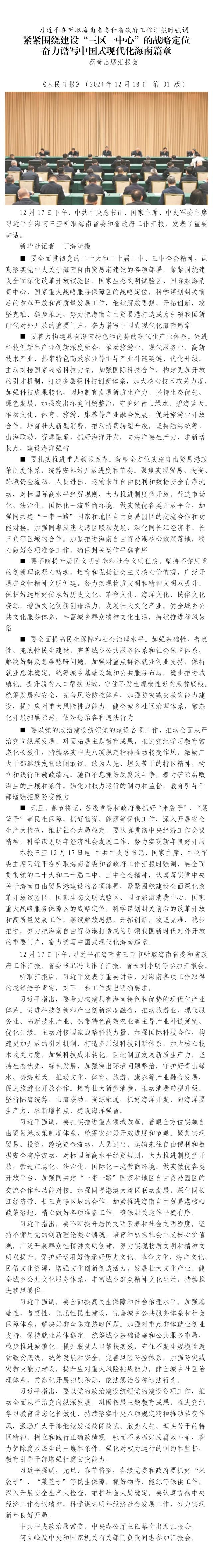 習(xí)近平在聽取海南省委和省政府工作匯報時強調(diào) 緊緊圍繞建設(shè)“三區(qū)一中心”的戰(zhàn)略定位 奮力譜寫中國式現(xiàn)代化海南篇章 蔡奇出席匯報會