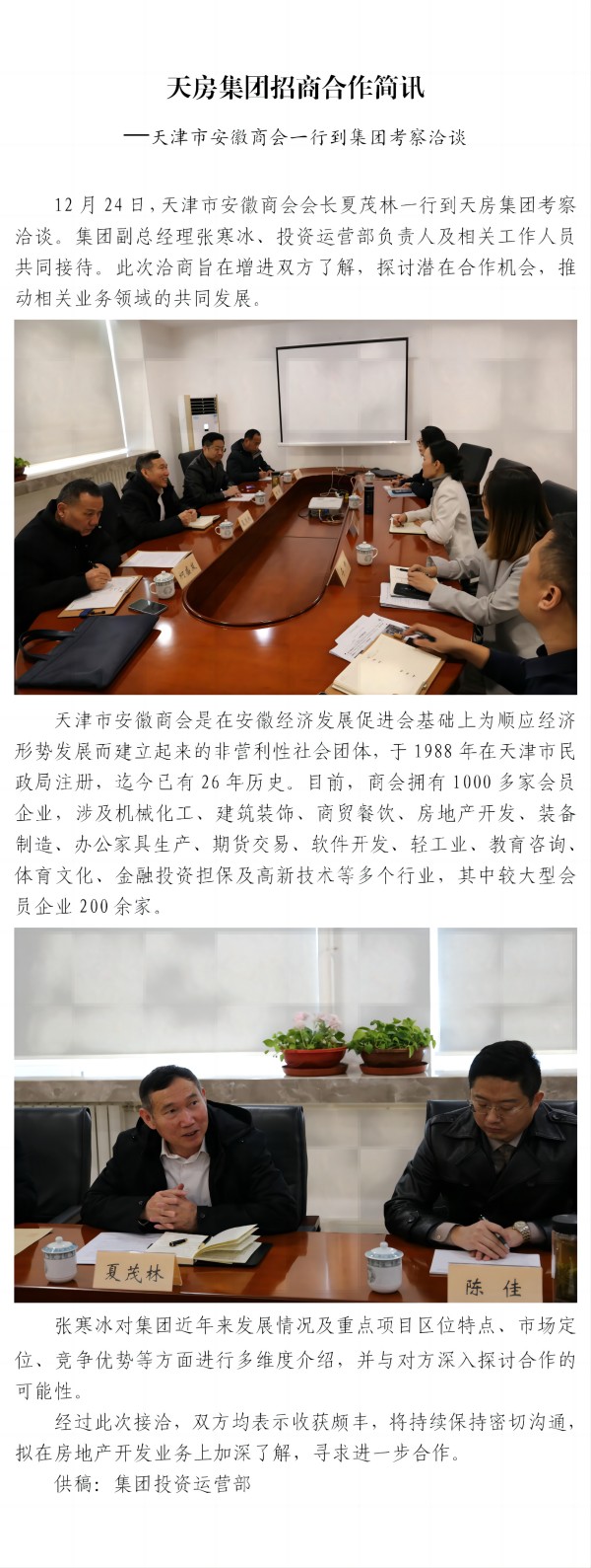 天房集團(tuán)招商合作簡(jiǎn)訊—天津市安徽商會(huì)一行到集團(tuán)考察洽談