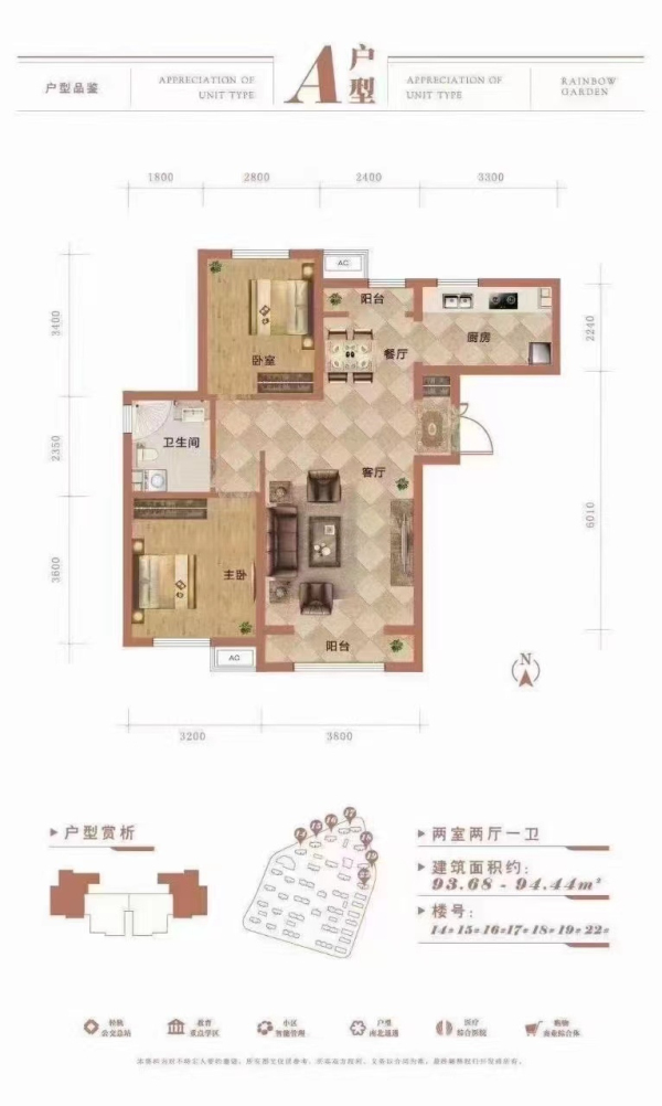 (建面約)94㎡兩室兩廳一衛(wèi)