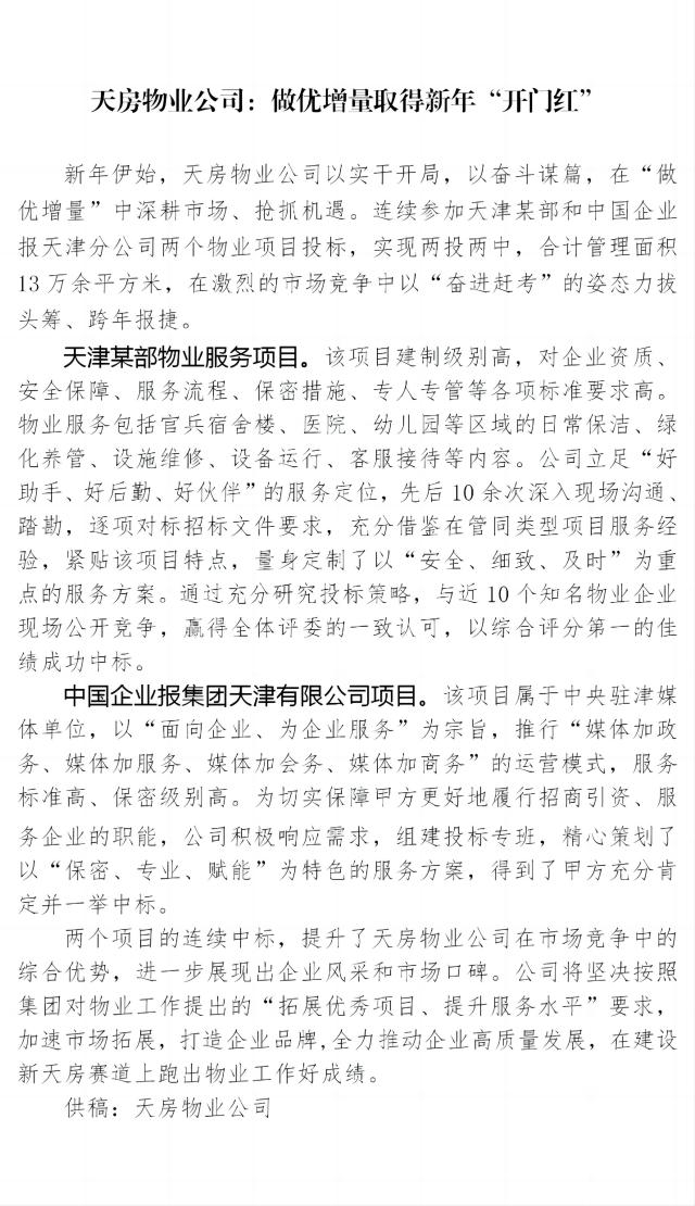 天房物業(yè)公司:做優(yōu)增量取得新年“開門紅”