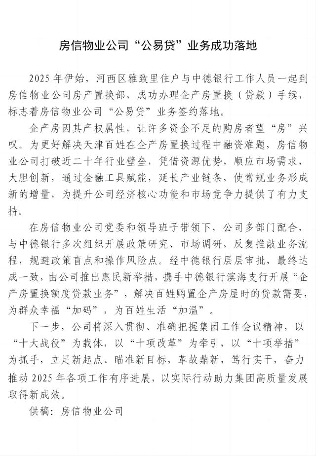 房信物業(yè)公司“公易貸”業(yè)務(wù)成功落地