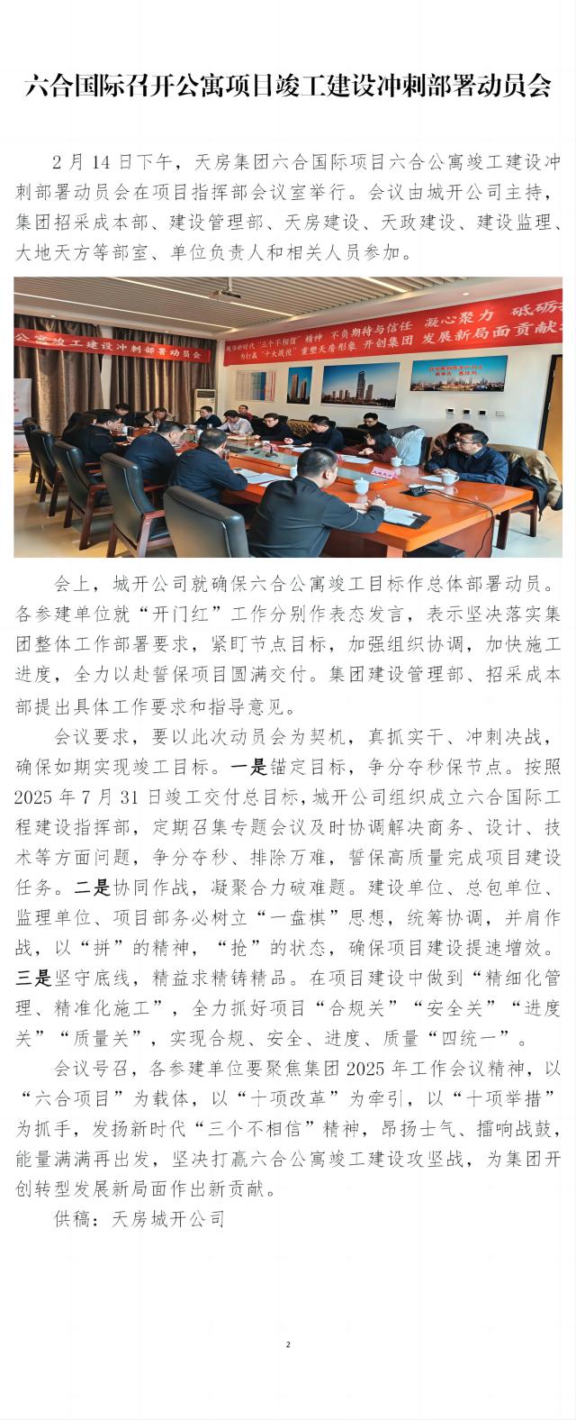 六合國際召開公寓項(xiàng)目竣工建設(shè)沖刺部署動(dòng)員會(huì)