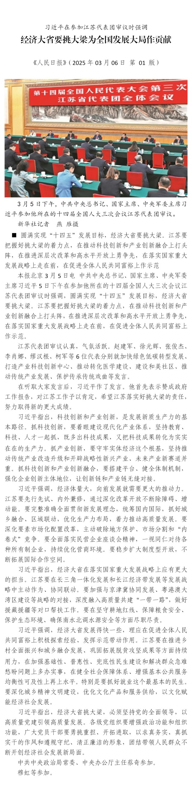 習(xí)近平在參加江蘇代表團(tuán)審議時(shí)強(qiáng)調(diào)