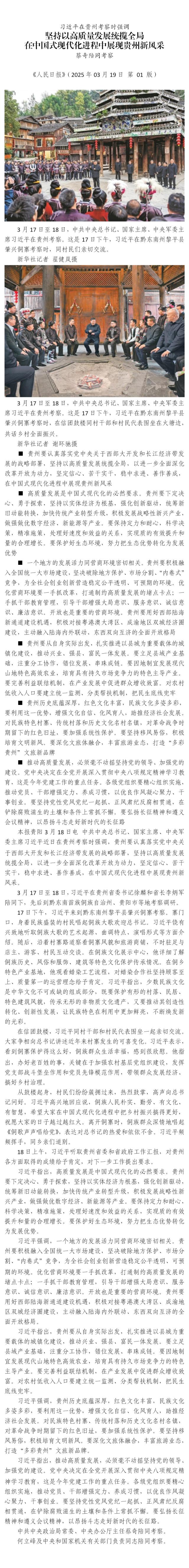習(xí)近平在貴州考察時(shí)強(qiáng)調(diào) 堅(jiān)持以高質(zhì)量發(fā)展統(tǒng)攬全局 在中國式現(xiàn)代化進(jìn)程中展現(xiàn)貴州新風(fēng)采 蔡奇陪同考察