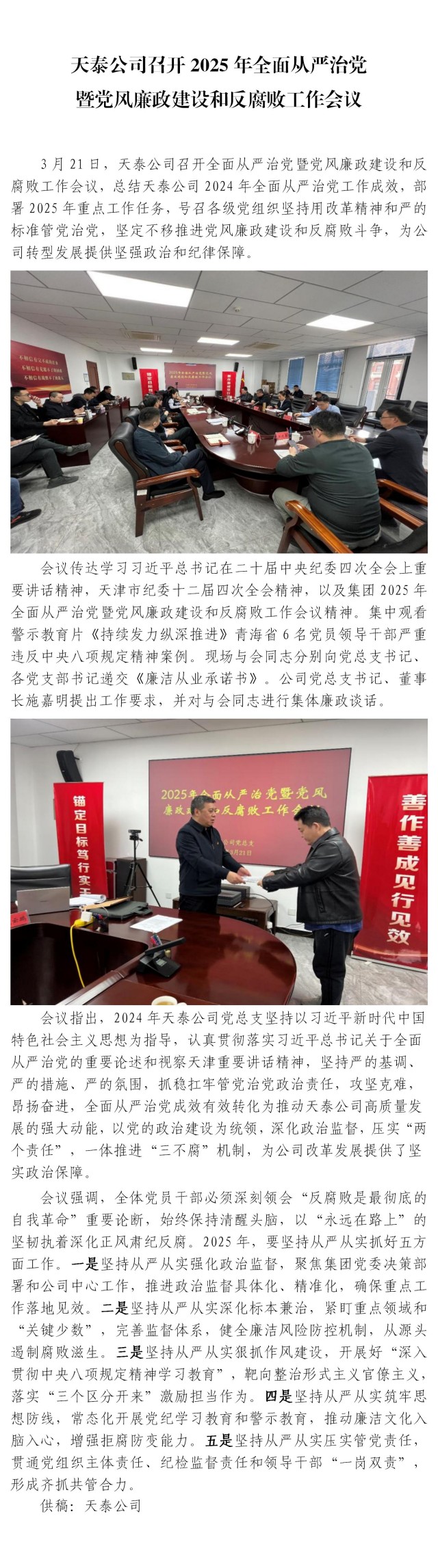 天泰公司召開2025年全面從嚴治黨暨黨風(fēng)廉政建設(shè)和反腐敗工作會議