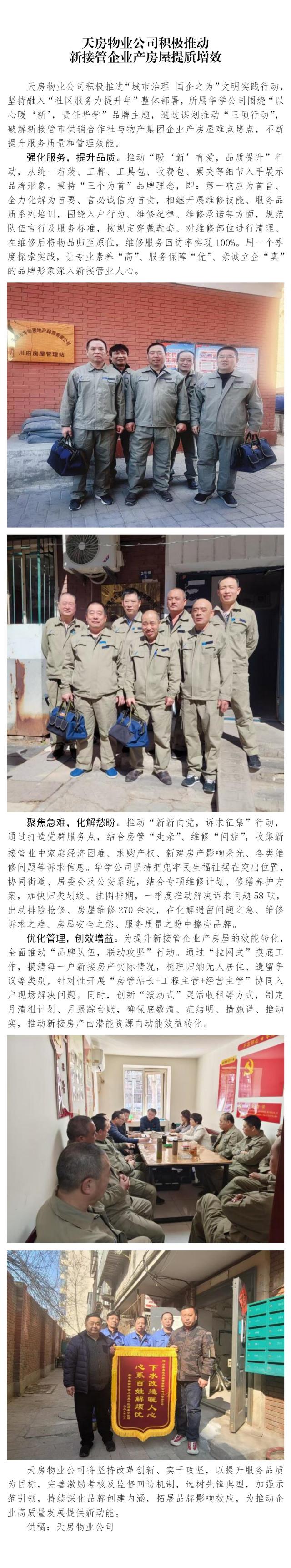 天房物業(yè)公司積極推動 新接管企業(yè)產(chǎn)房屋提質(zhì)增效