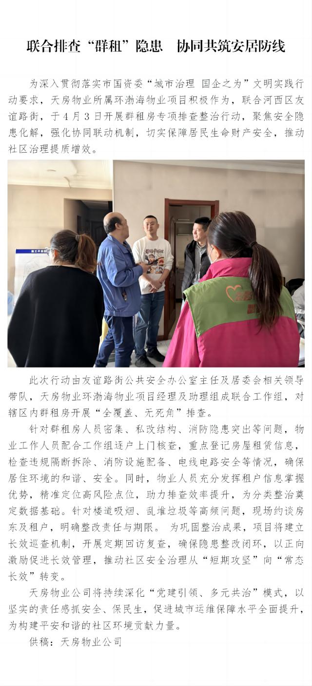 天房物業(yè)公司:聯(lián)合排查“群租”隱患 協(xié)同共筑安居防線