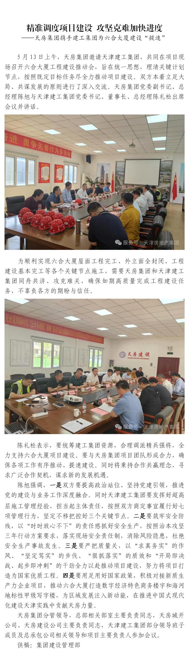 天房集團攜手建工集團為六合大廈建設“提速”