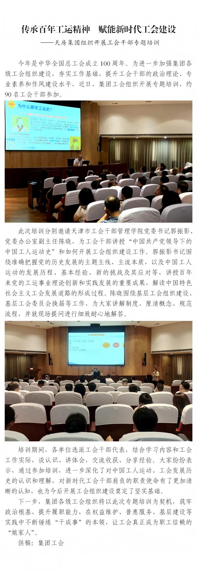 傳承百年工運(yùn)精神 賦能新時(shí)代工會(huì)建設(shè) ——天房集團(tuán)組織開(kāi)展工會(huì)干部專(zhuān)題培訓(xùn)