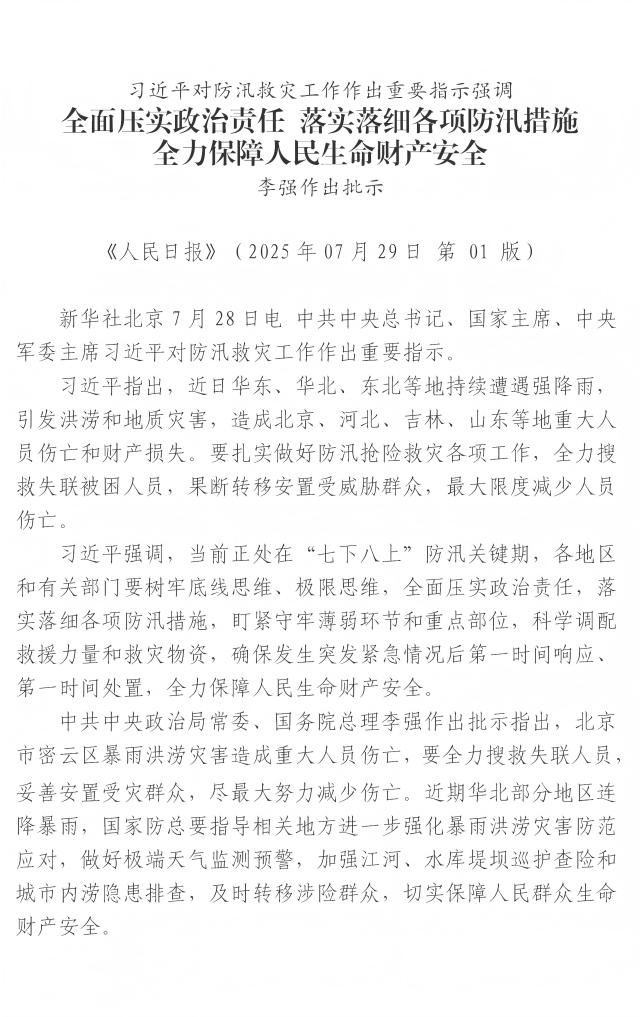 習(xí)近平對防汛救災(zāi)工作作出重要指示強(qiáng)調(diào)