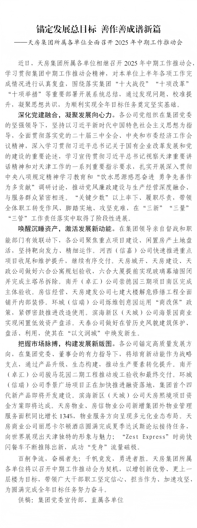 錨定發(fā)展總目標 善作善成譜新篇——天房集團所屬各單位全面召開2025年中期工作推動會