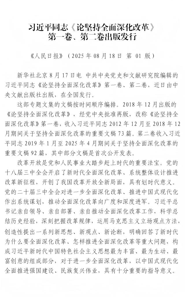 習(xí)近平同志《論堅(jiān)持全面深化改革》 第一卷、第二卷出版發(fā)行