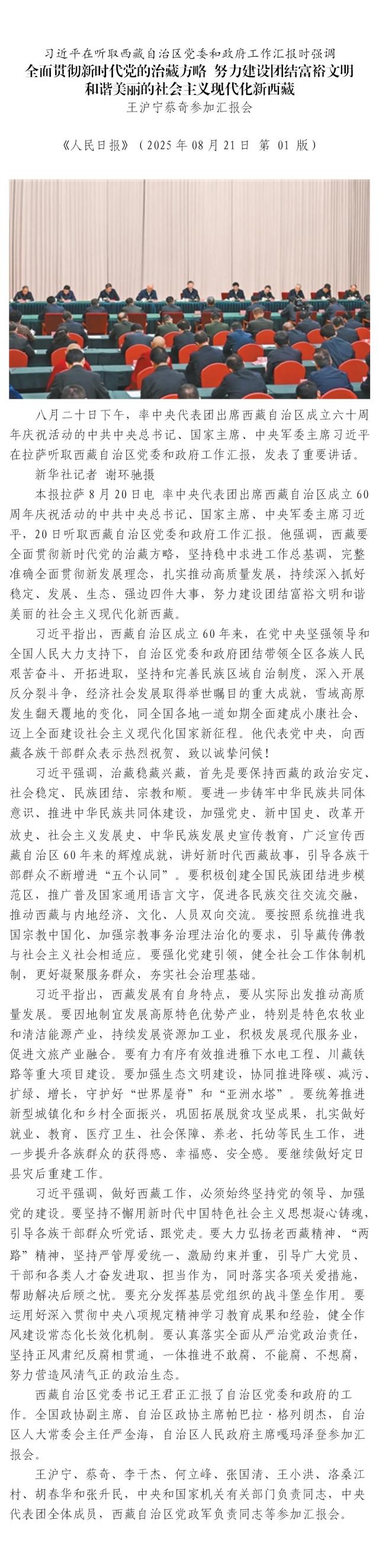 習(xí)近平在聽取西藏自治區(qū)黨委和政府工作匯報(bào)時強(qiáng)調(diào)