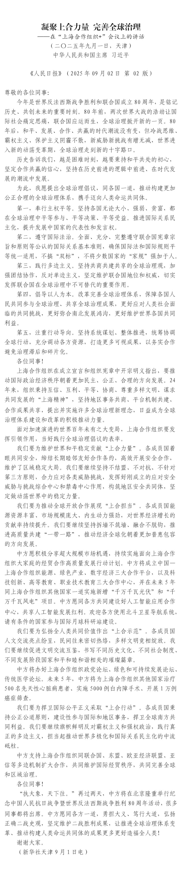 凝聚上合力量 完善全球治理
