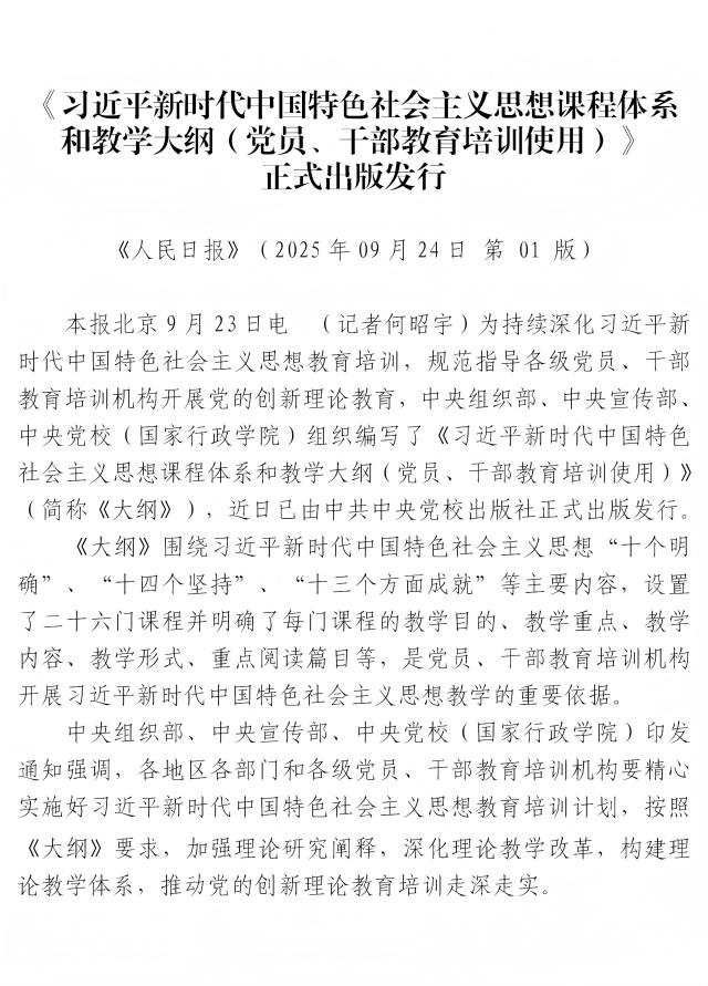 《習(xí)近平新時(shí)代中國特色社會主義思想課程體系和教學(xué)大綱(黨員、干部教育培訓(xùn)使用)》 正式出版發(fā)行