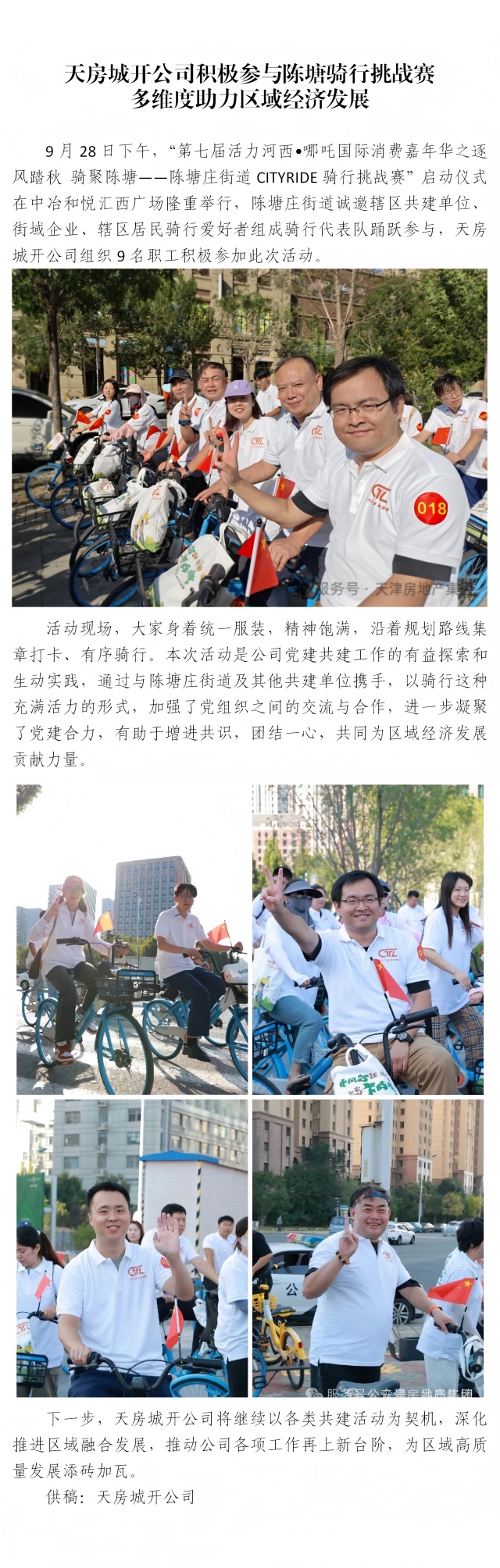 天房城開公司積極參與陳塘騎行挑戰(zhàn)賽 多維度助力區(qū)域經(jīng)濟(jì)發(fā)展