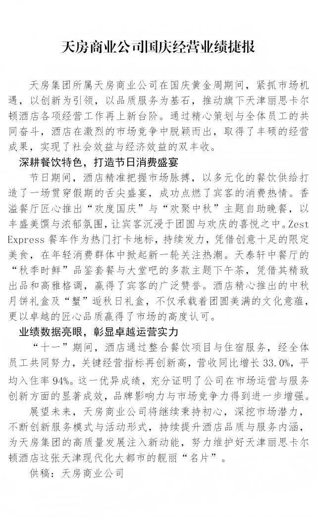 天房商業(yè)公司國慶經(jīng)營業(yè)績捷報