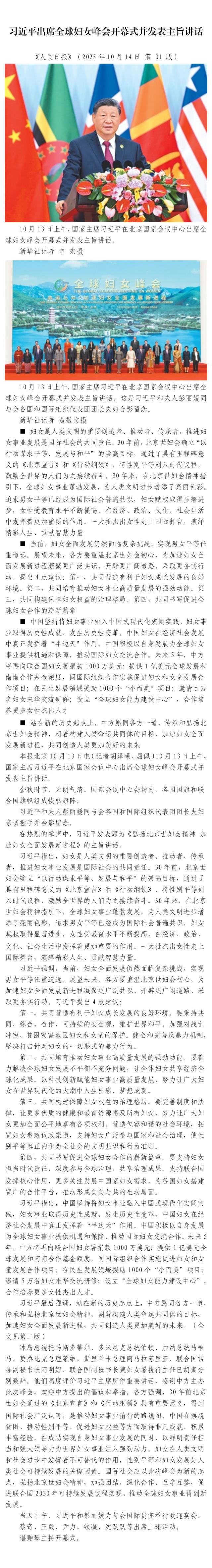 習(xí)近平出席全球婦女峰會開幕式并發(fā)表主旨講話