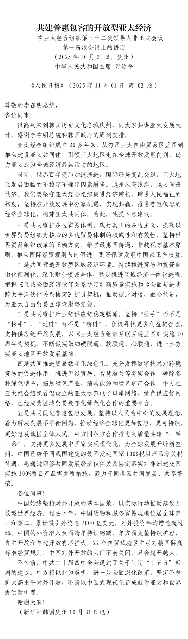 共建普惠包容的開放型亞太經(jīng)濟(jì)