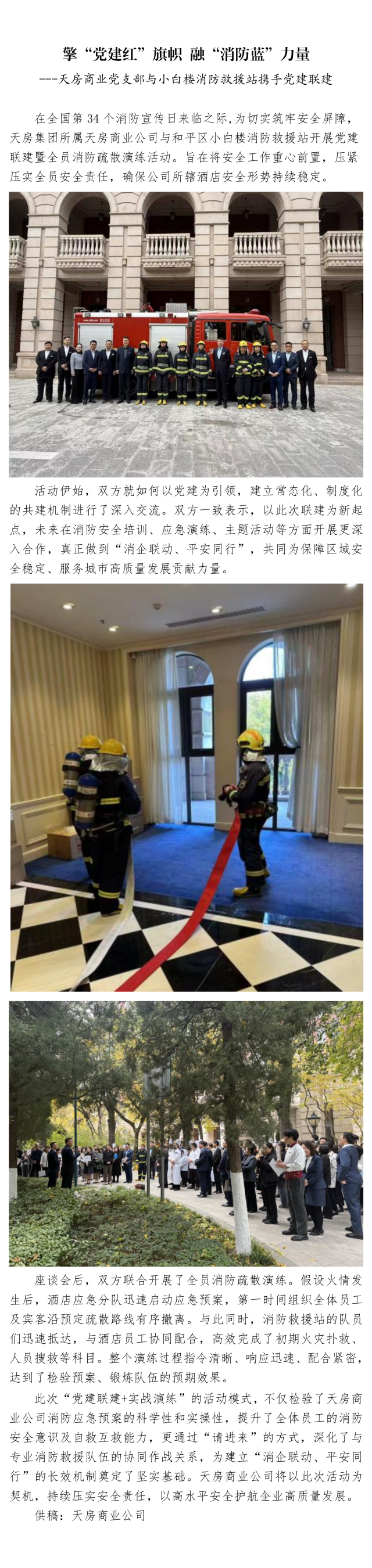 擎“黨建紅”旗幟 融“消防藍”力量 ---天房商業(yè)黨支部與小白樓消防救援站攜手黨建聯(lián)建