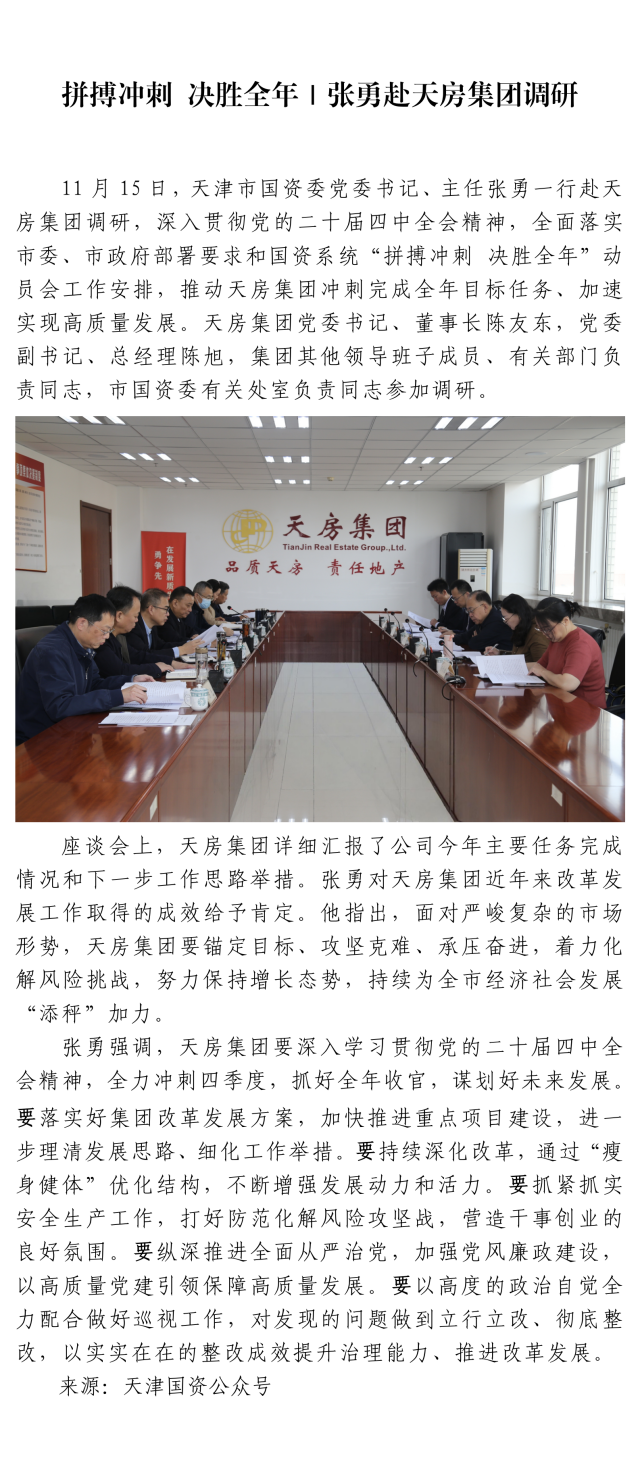 拼搏沖刺 決勝全年|張勇赴天房集團調(diào)研