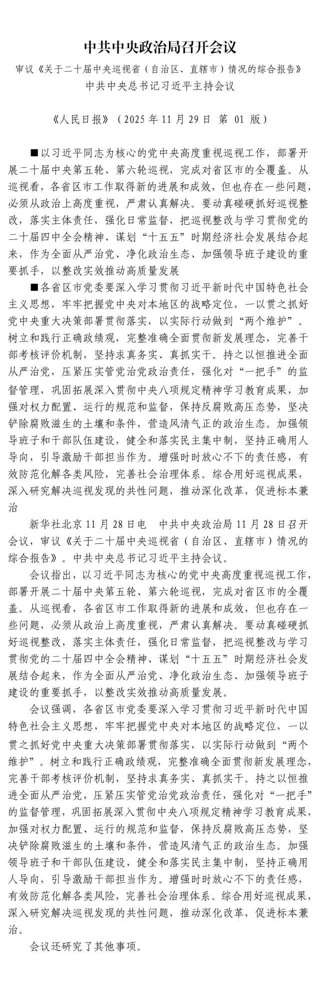 中共中央政治局召開會議