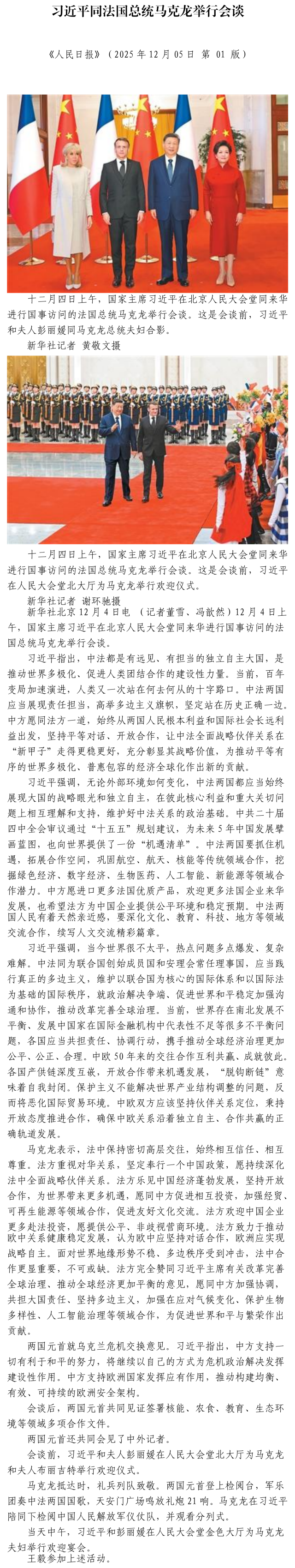 習(xí)近平同法國總統(tǒng)馬克龍舉行會談