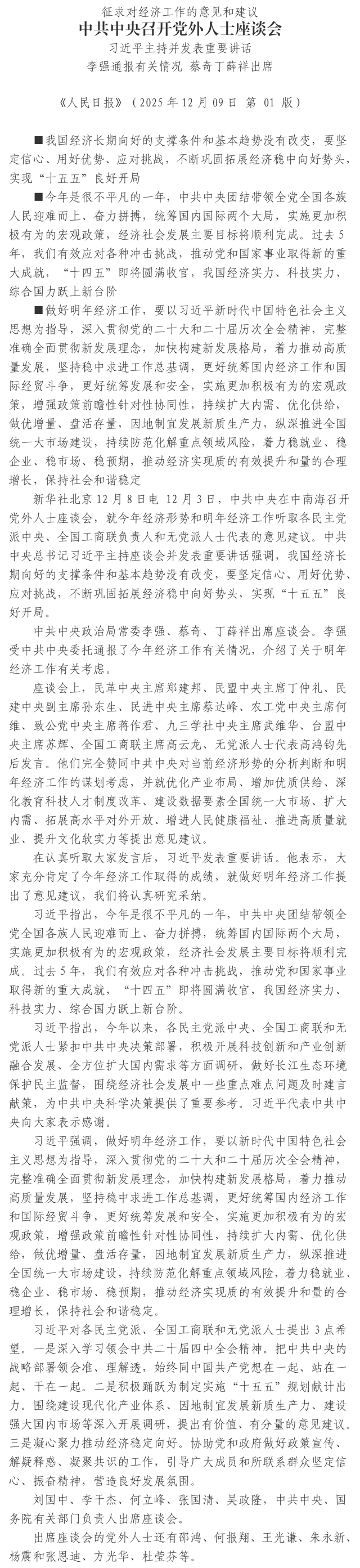 征求對(duì)經(jīng)濟(jì)工作的意見(jiàn)和建議