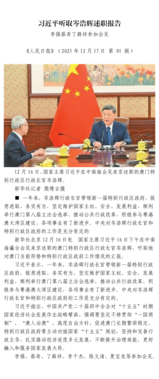 習近平聽取岑浩輝述職報告