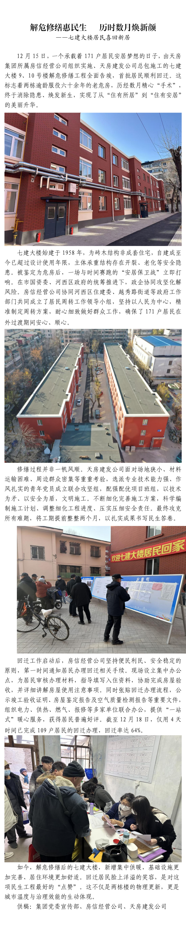 解危修繕惠民生 歷時數(shù)月煥新顏 ——七建大樓居民喜回新居