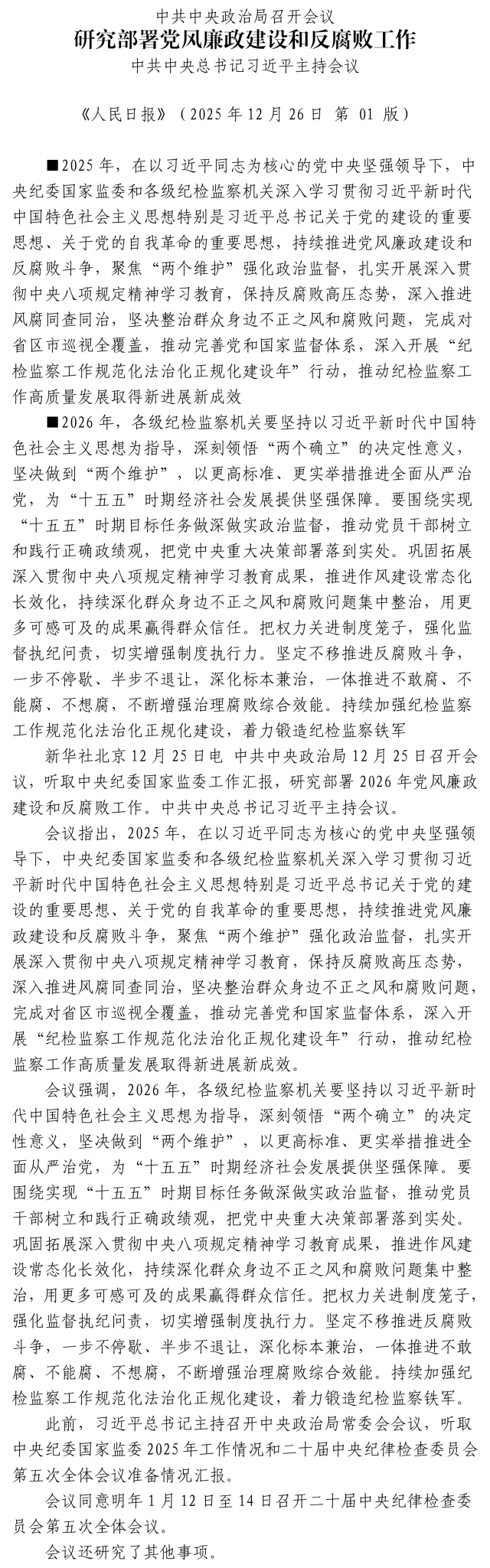 中共中央政治局召開會議