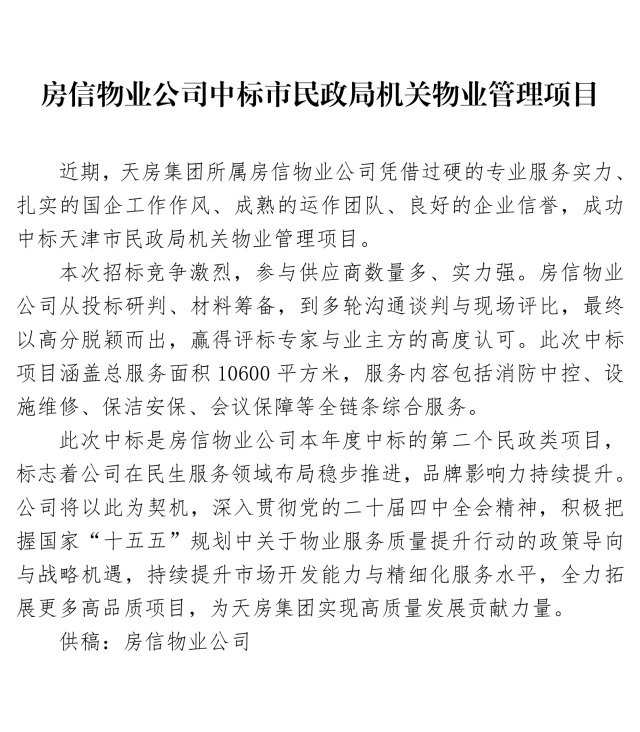 房信物業(yè)公司中標(biāo)市民政局機(jī)關(guān)物業(yè)管理項目