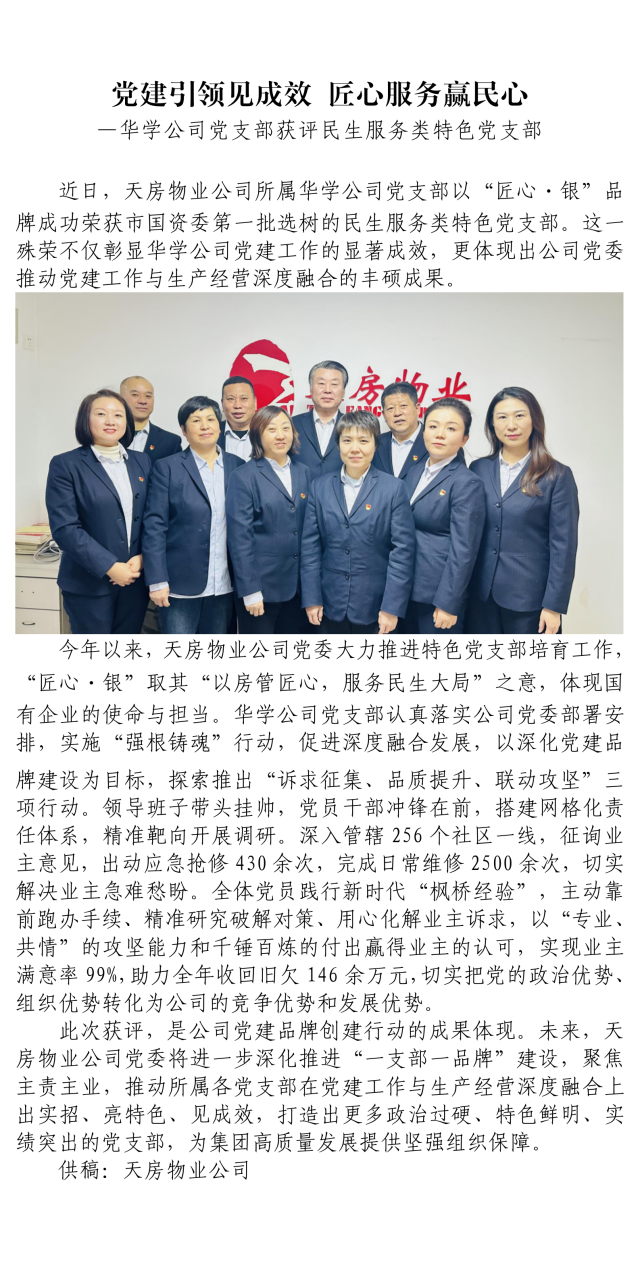 黨建引領(lǐng)見成效 匠心服務(wù)贏民心 —華學(xué)公司黨支部獲評民生服務(wù)類特色黨支部