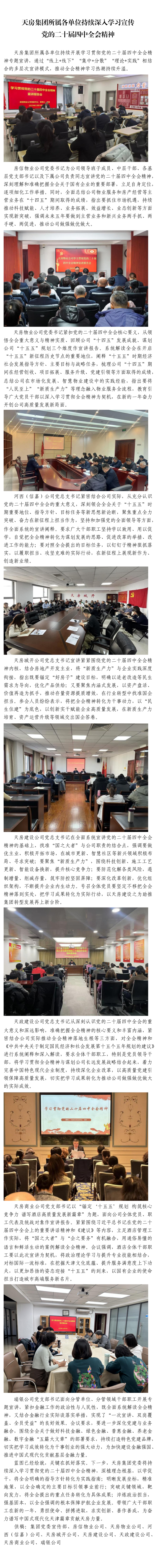 天房集團(tuán)所屬各單位持續(xù)深入學(xué)習(xí)宣傳黨的二十屆四中全會精神
