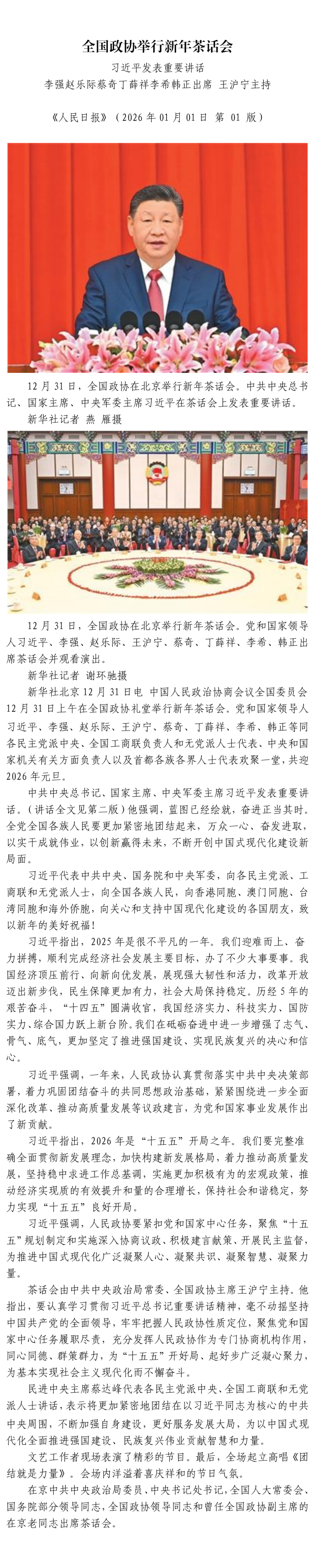 全國(guó)政協(xié)舉行新年茶話會(huì)