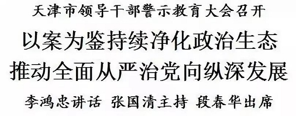 天津市領(lǐng)導(dǎo)干部警示教育大會召開 以案為鑒持續(xù)凈化政治生態(tài) 推動全面從嚴治黨向縱深發(fā)展