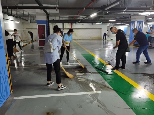 由于近期頻繁降雨加之空氣濕度增大,導(dǎo)致六合國際地下車庫產(chǎn)生積水,對行車安全構(gòu)成一定影響。隱患就是事故,為盡快消除隱患,公司主動請纓負責(zé)清理地庫積水工作。在清理積水過程中,大家積極克服地庫潮濕陰冷帶來的不利影響,充分發(fā)揚不怕苦、不怕臟的精神,分工明確、通力合作,順利完成了近2萬平方米的積水清理工作,受到了項目方的高度贊揚。
