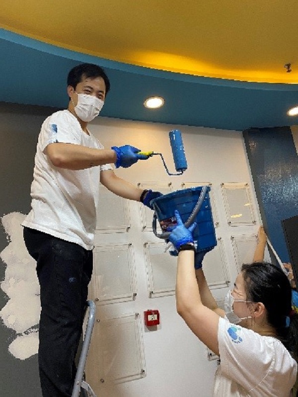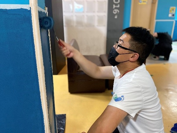 活動當(dāng)日,志愿者們帶著工具,來到童之舟自閉癥中心康復(fù)中心新校址,為新教室粉刷墻裙,幫助這里的老師和小朋友改善學(xué)習(xí)環(huán)境。