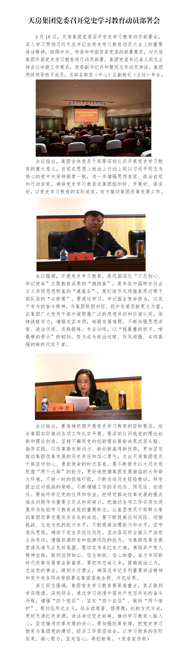 天房集團(tuán)黨委召開黨史學(xué)習(xí)教育動員部署會