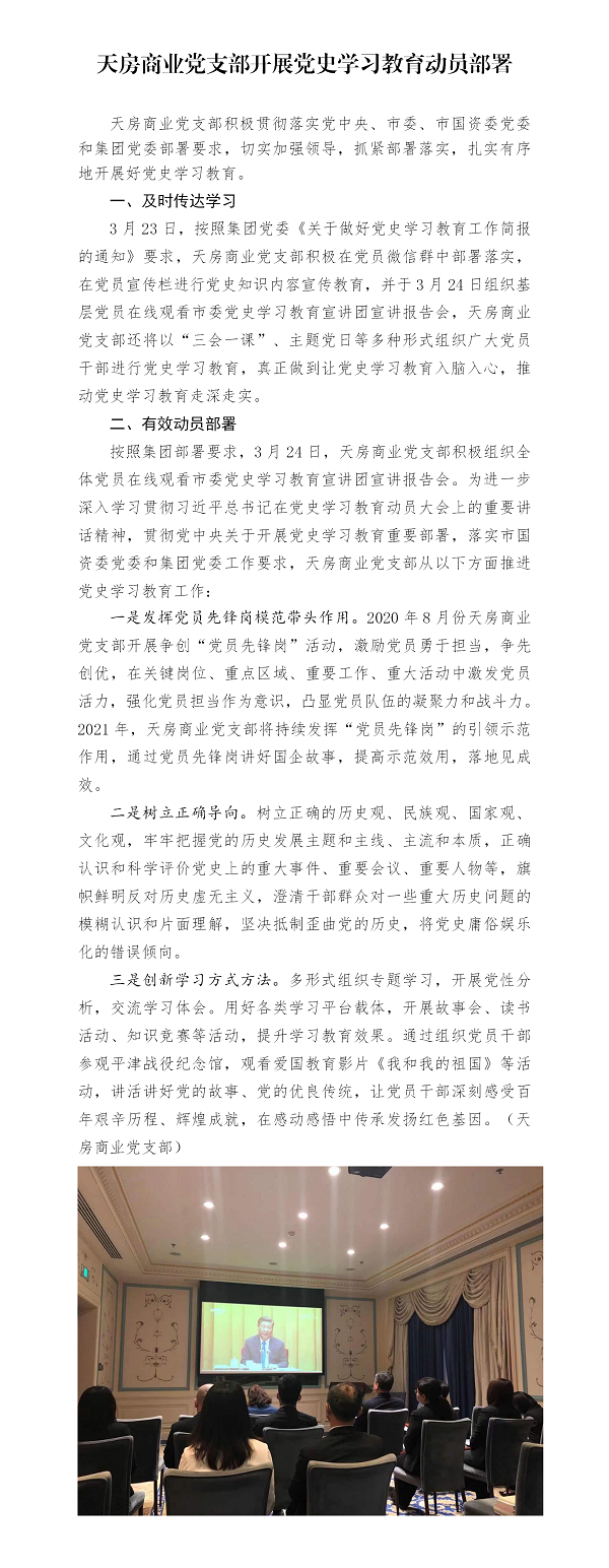 天房商業(yè)黨支部開展黨史學習教育動員部署