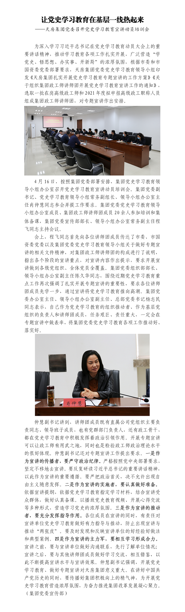 讓黨史學習教育在基層一線熱起來——天房集團黨委召開黨史學習教育宣講動員培訓會