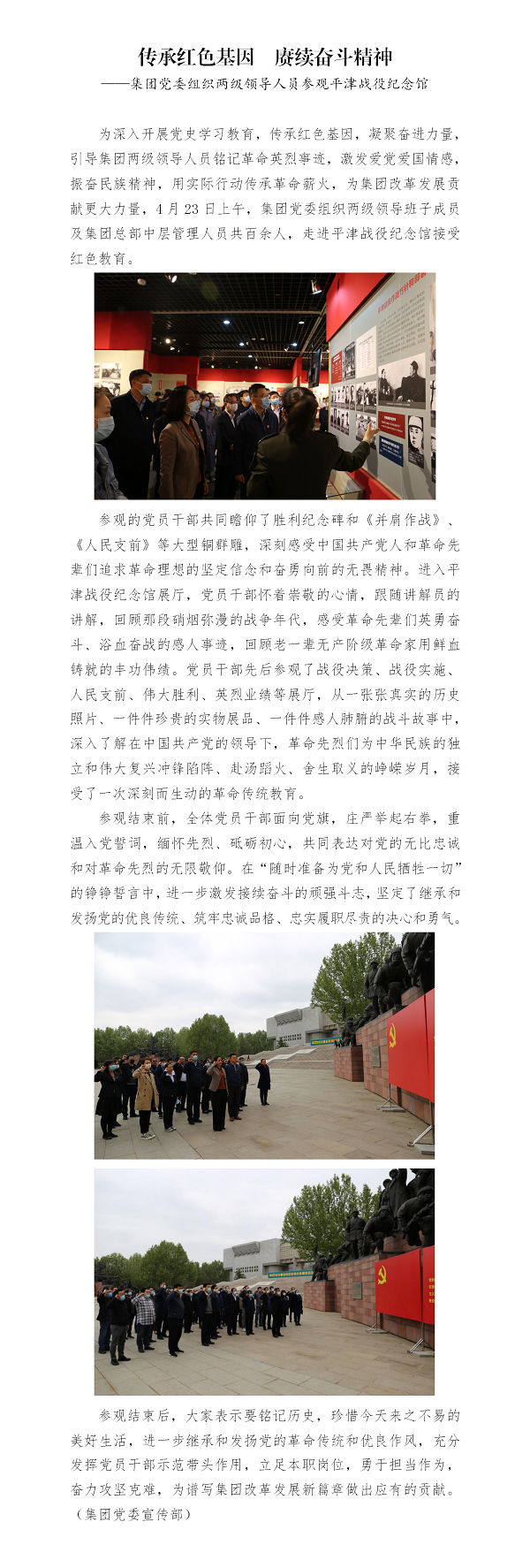 傳承紅色基因 ?賡續(xù)奮斗精神——集團(tuán)黨委組織兩級(jí)領(lǐng)導(dǎo)人員參觀平津戰(zhàn)役紀(jì)念館