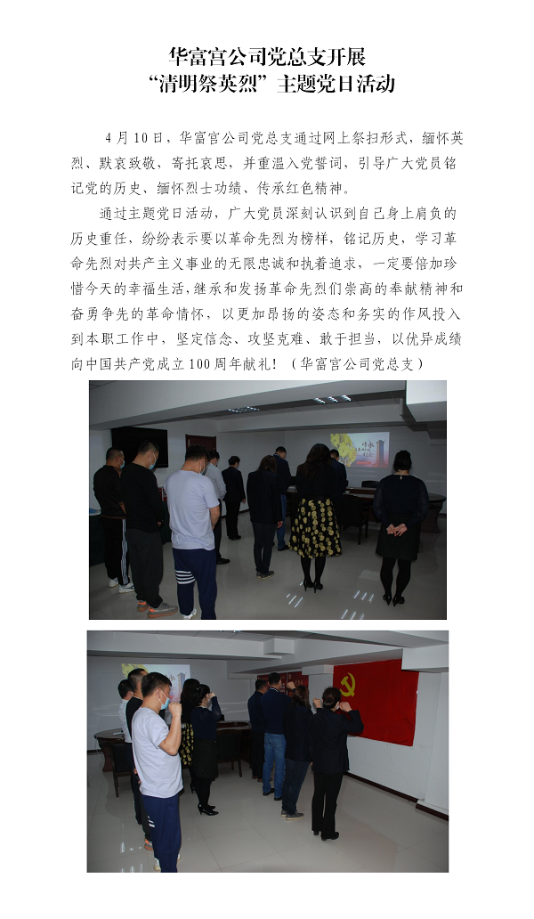 華富宮公司黨總支開展“清明祭英烈”主題黨日活動