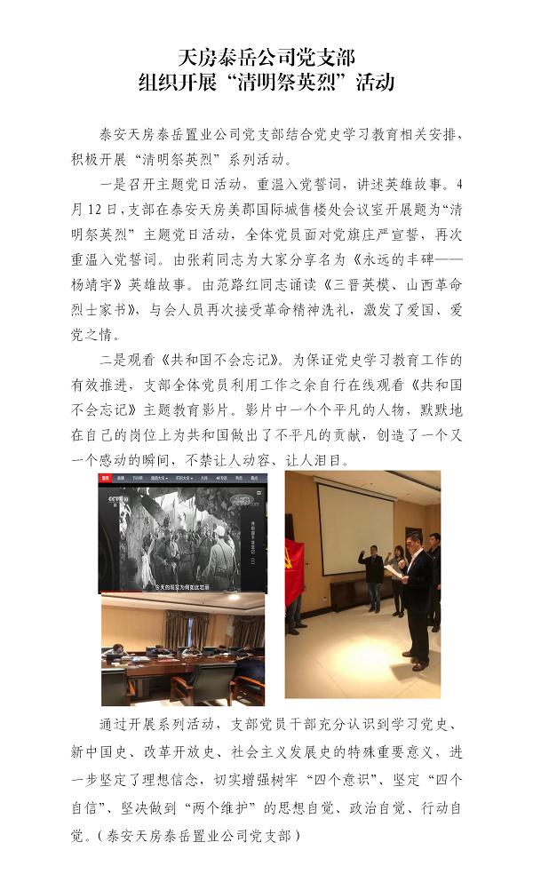 天房泰岳公司黨支部組織開展“清明祭英烈”活動