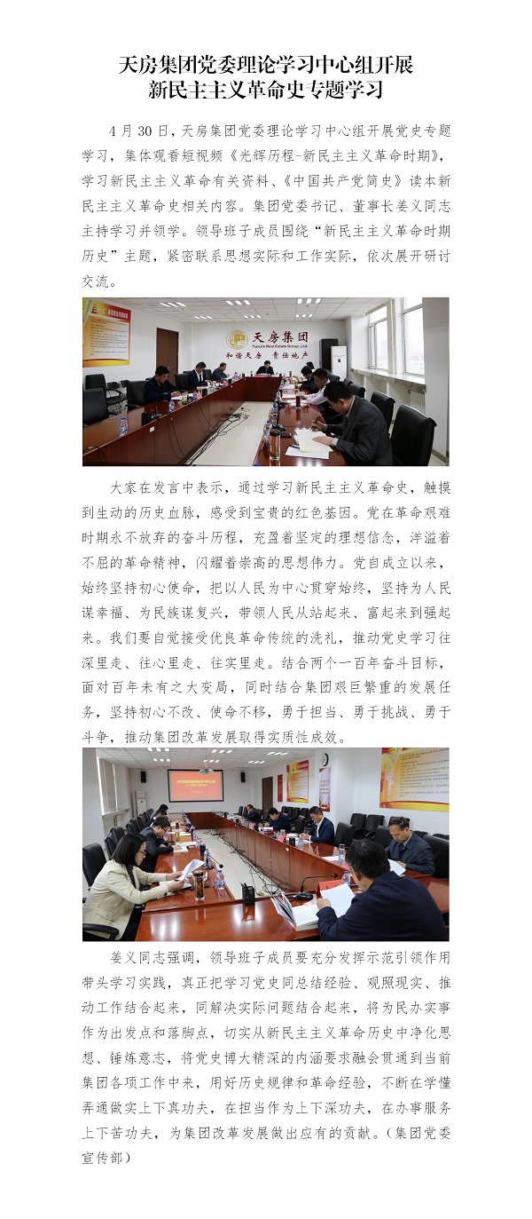 天房集團(tuán)黨委理論學(xué)習(xí)中心組開(kāi)展新民主主義革命史專題學(xué)習(xí)