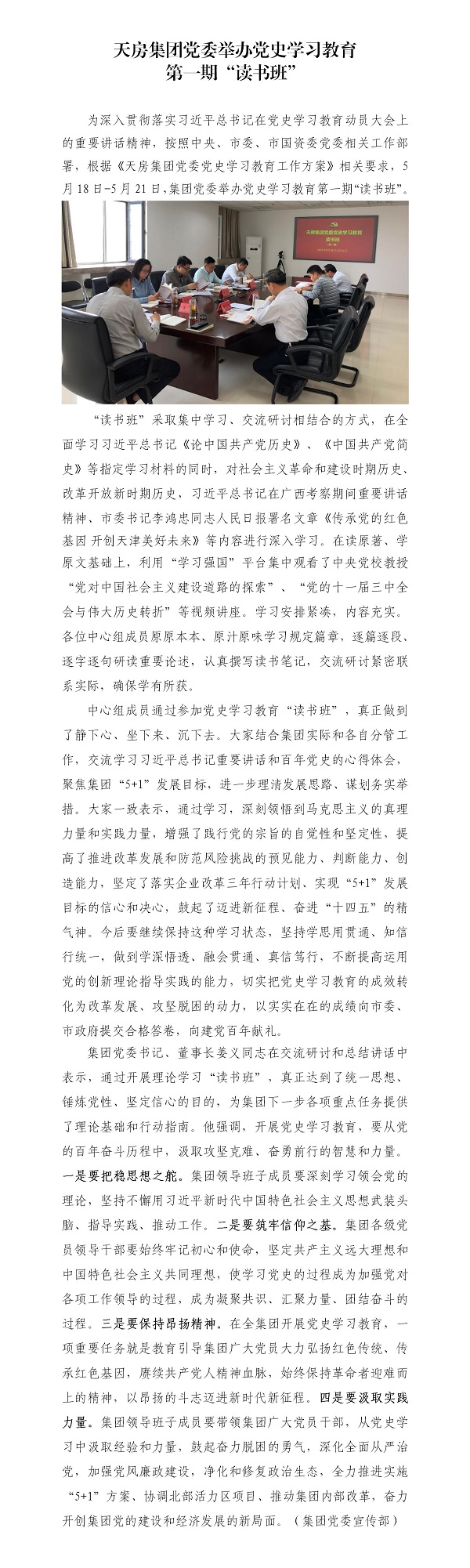天房集團黨委舉辦黨史學習教育第一期“讀書班”