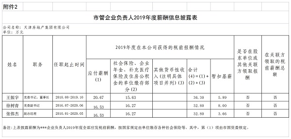 市管企業(yè)負責(zé)人2019年度薪酬信息披露表