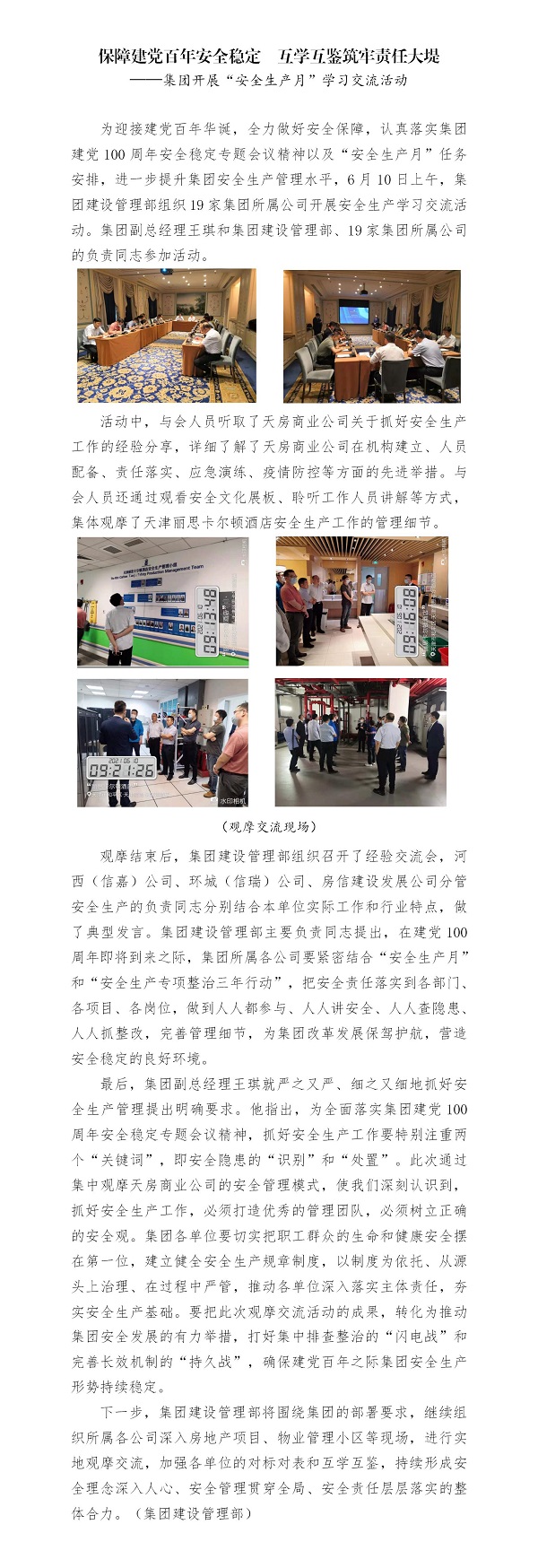 保障建黨百年安全穩(wěn)定??互學(xué)互鑒筑牢責(zé)任大堤——集團(tuán)開展“安全生產(chǎn)月”學(xué)習(xí)交流活動(dòng)