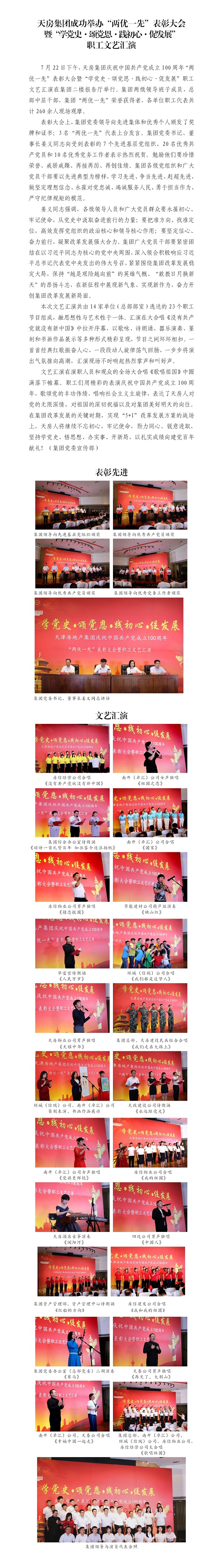天房集團成功舉辦“兩優(yōu)一先”表彰大會暨“學黨史·頌黨恩·踐初心·促發(fā)展”職工文藝匯演