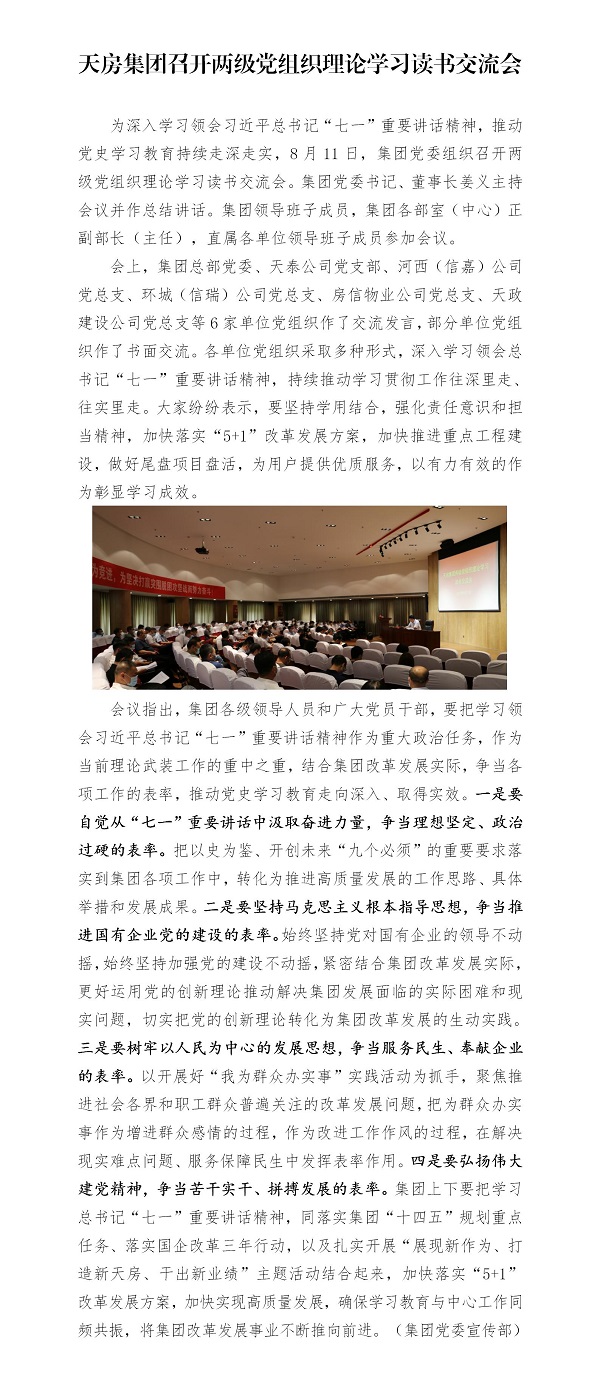 天房集團(tuán)召開(kāi)兩級(jí)黨組織理論學(xué)習(xí)讀書交流會(huì)